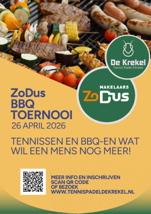 Een leuk tennis toernooi op zondag 26 april 2026 met afsluitend een BBQ! Lees snel verder en schrijf je in.